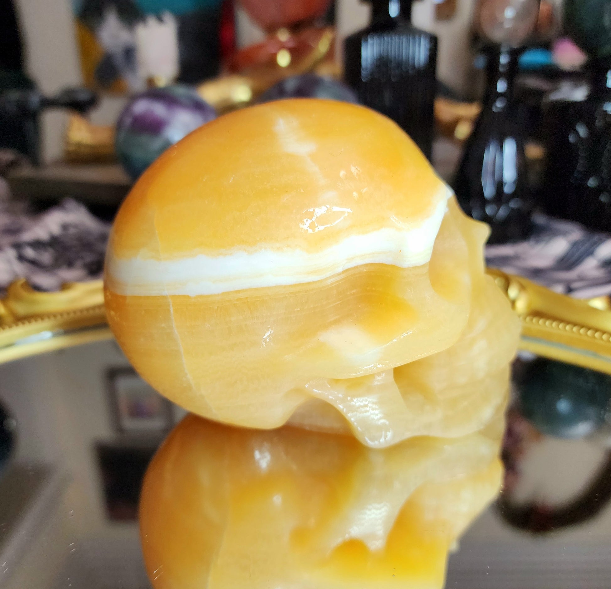 Orange Calcite Skull A