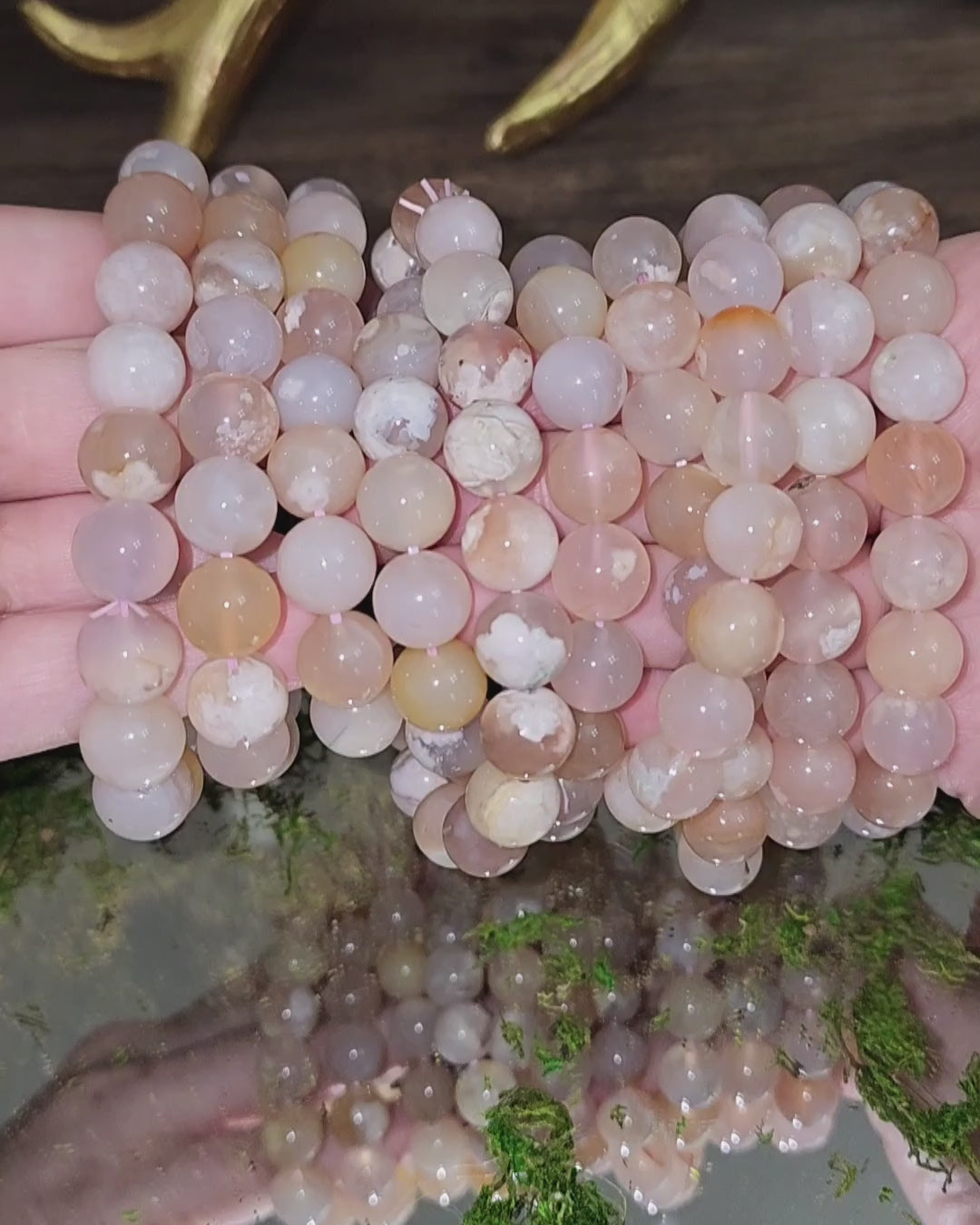 11mm Pink Flower Agate Stretch Bracelet