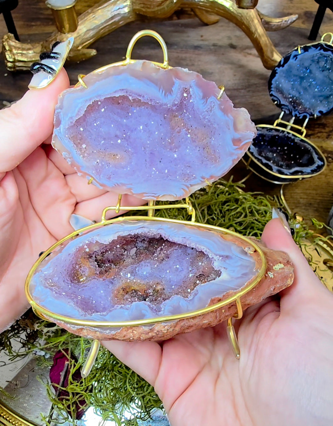 This super sparkling geoge has been turned into a jewelry box with copper wires.
