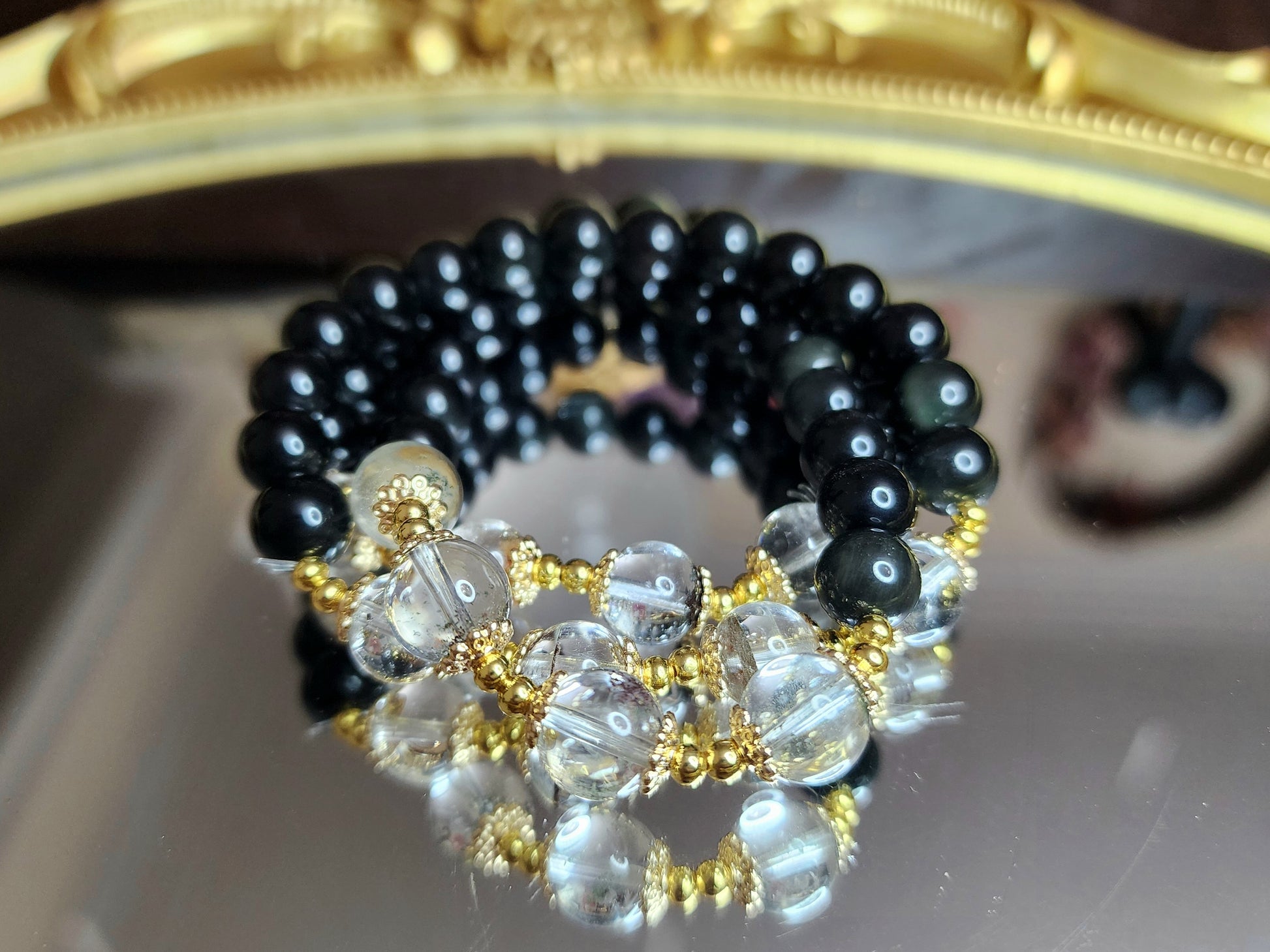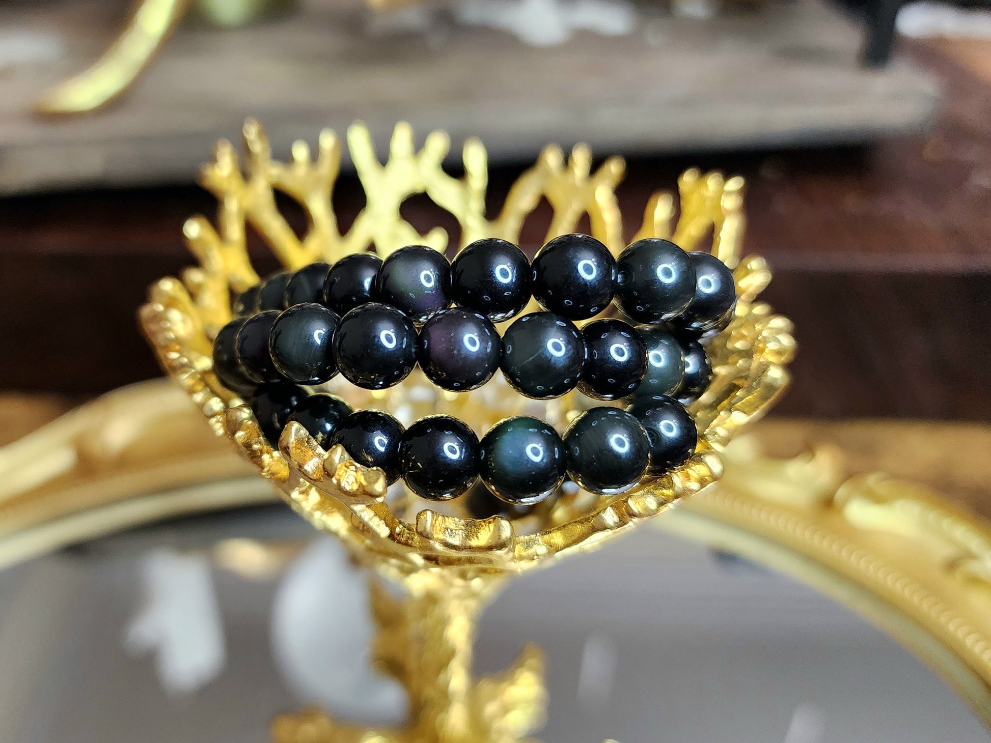 Born from the rapid cooling of volcanic lava, Rainbow Obsidian is a natural glass that can have shades of purple and green.