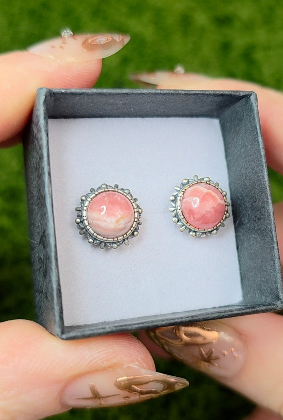 These stones are 9mm and are set in 11.5mm sterling silver post earrings.