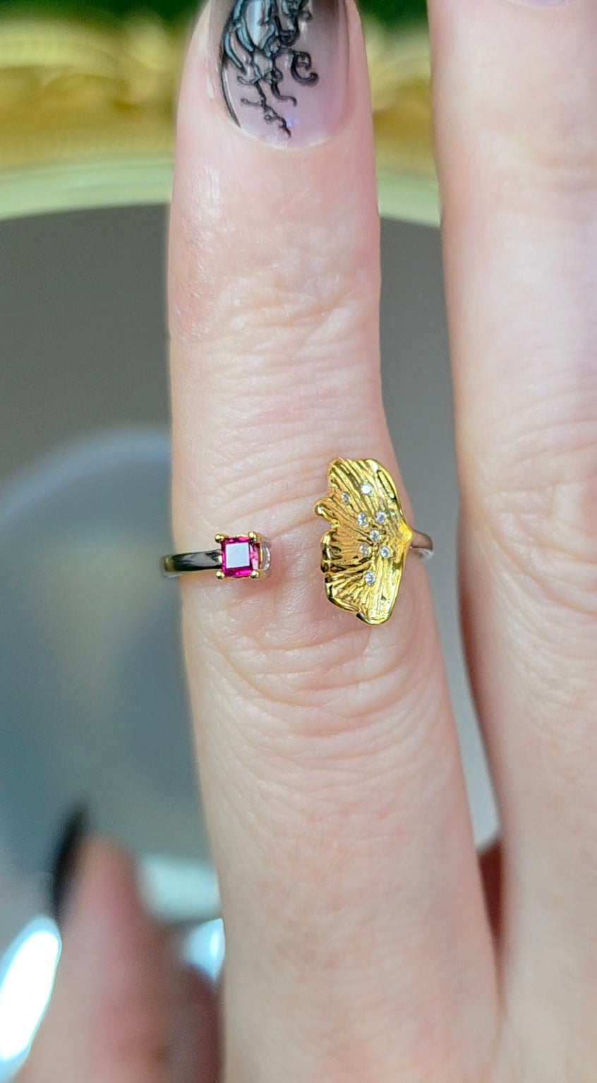 Ruby Ginko Leaf Ring