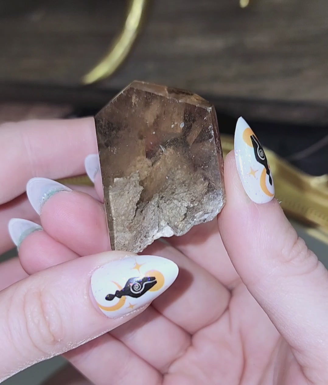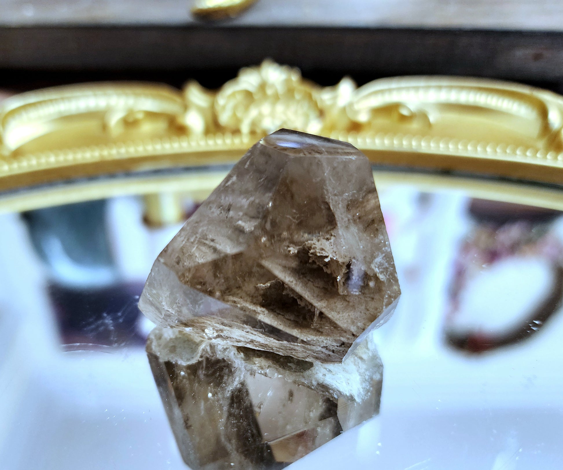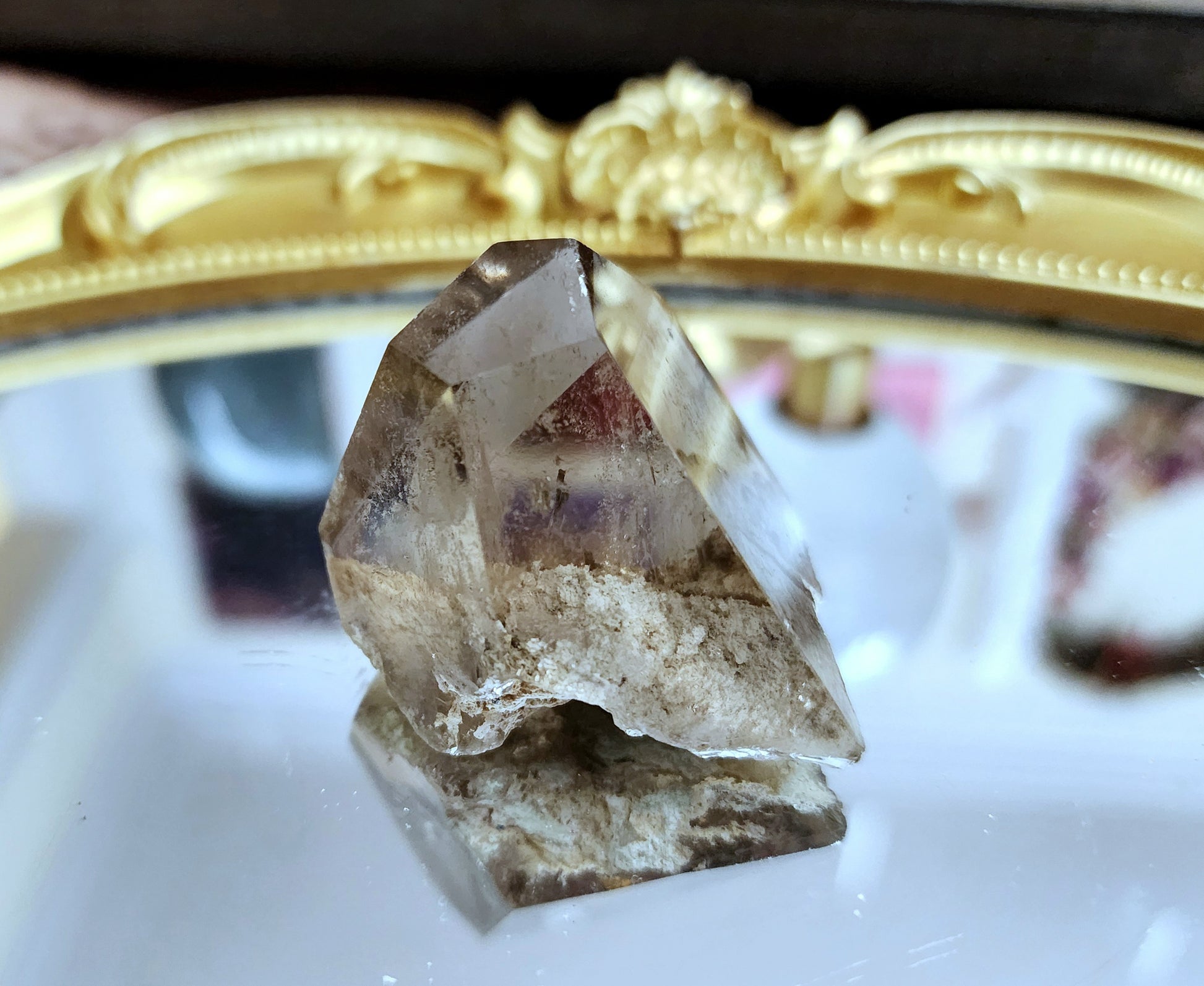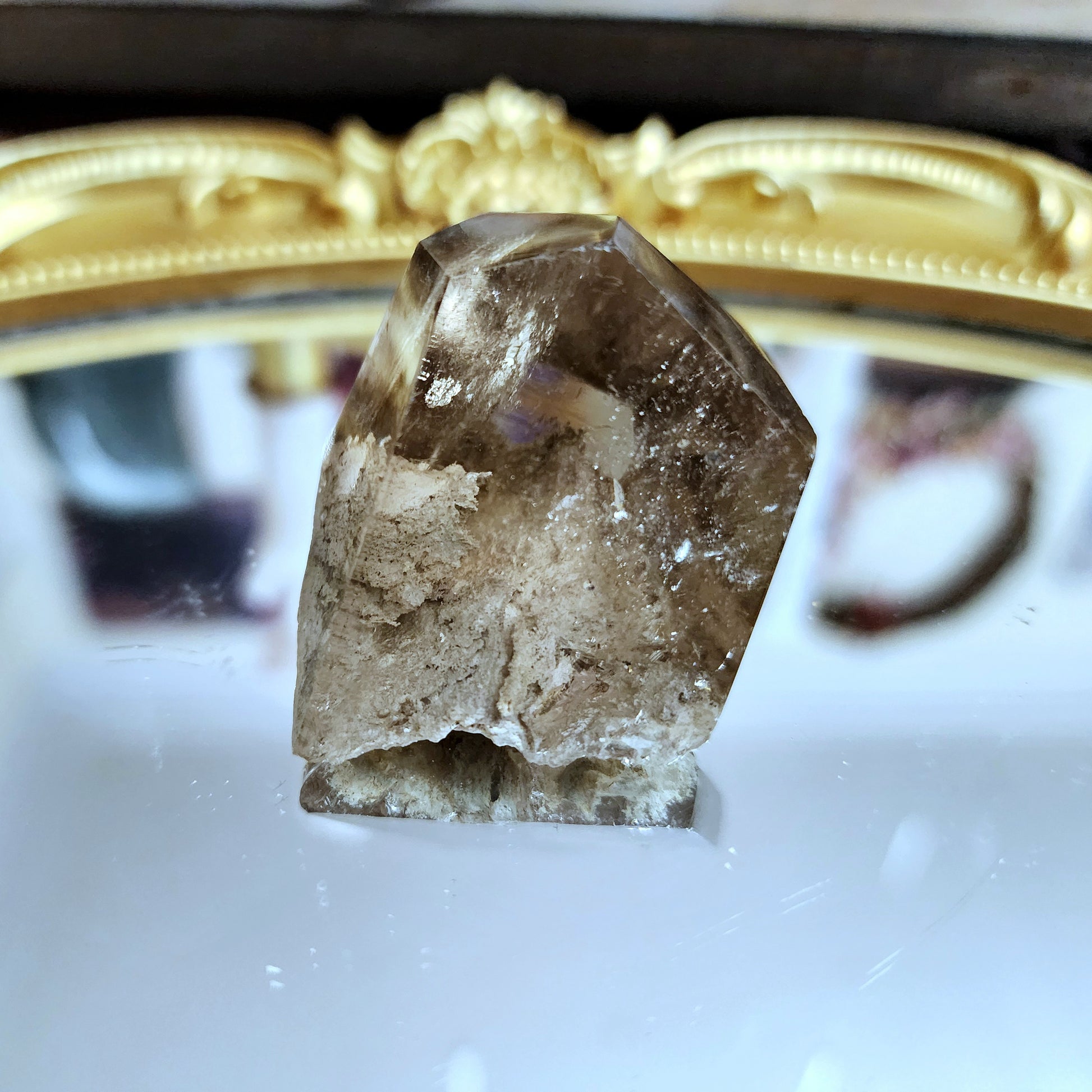 Beautifully clear Smokey Quartz with white inclusions that are likely feldspar